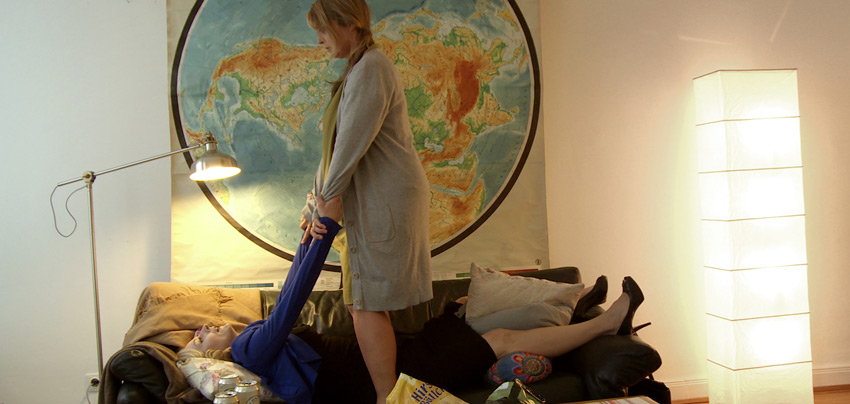 Entwickle ein Spielfeld, ein paar Figuren und lass sie dann – ohne Drehbuch – aufeinander los und schau zu, was passiert. Als Regisseurin braucht man schon einen recht soliden Seelenfrieden, um das auszuhalten. Lilli Thalgott kennt dieses Gefühl spätestens seit ihrem Debüt ‚Heiligabend mit Hase’ (Publikumspreis Max Ophüls Preis 2012, Mittellanger Film). Sie weiß, wie es sich anfühlt, an der Seitenlinie zu stehen und sich hilflos die Haare zu raufen, wenn das Spiel seinen Lauf nimmt. Gemeinsam mit Mignon Remé (hidden shakespeare) hat sie sechs Charaktere entworfen und sie in einen situativen Rahmen gesteckt. Jeder Schauspieler erhält eine eigene Biografie und ein paar Informationen über die anderen, aber nur so viel, wie er oder sie in der Rolle über die „Person“ wissen kann. Auf diese Weise entsteht im Spiel eine sehr realistische Atmosphäre, die so nicht „schreibbar“ ist. Gedreht wird das, was sich hier und jetzt entfaltet, es gibt kein Zurück. Dramaturgisches Eingreifen ist erst im Schnitt wieder möglich.